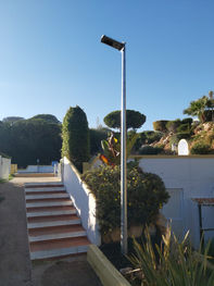 Com design elegante, é constituído principalmente por liga de alumínio e vidro temperado e reúne num mesmo bloco um painel solar fotovoltaico altamente eficiente, uma bateria de lítio de última geração, lâmpada LED e um sistema de gestão de energia com tecnologia inovadora. É totalmente autónomo e de fácil instalação (basta fixar a uma coluna ou parede - não precisa de qualquer ligação à rede elétrica). Está ainda equipado com sensor crepuscular/luminosidade, o que lhe permite ligar e desligar de forma automática.